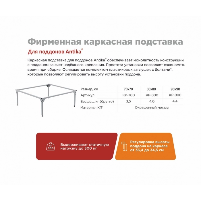 Каркас для душевого поддона 70*70 (квадрат) Antika